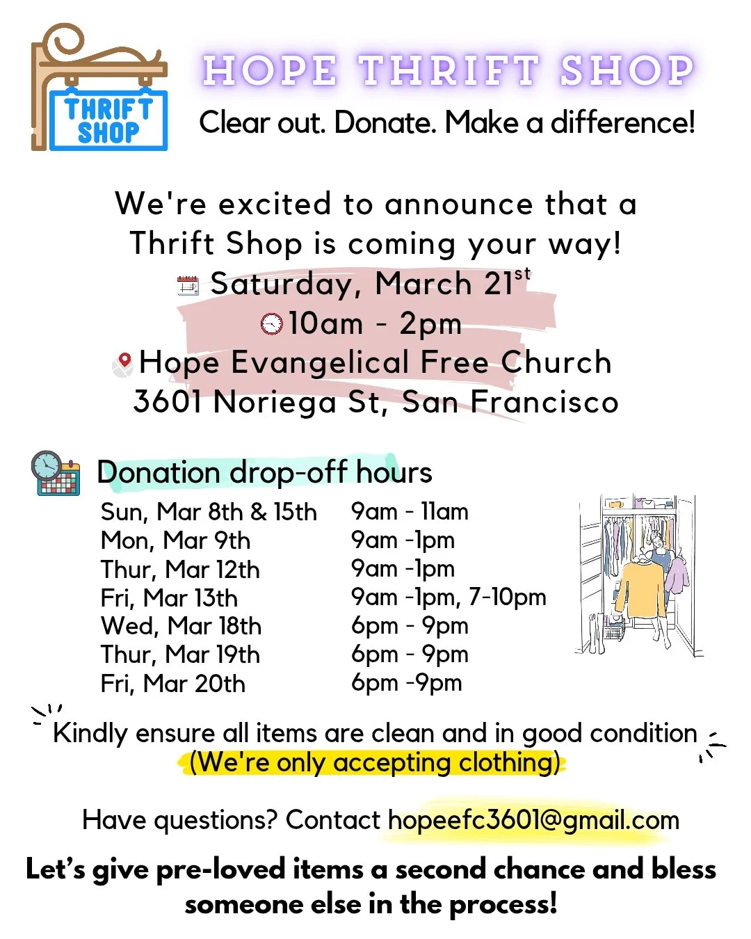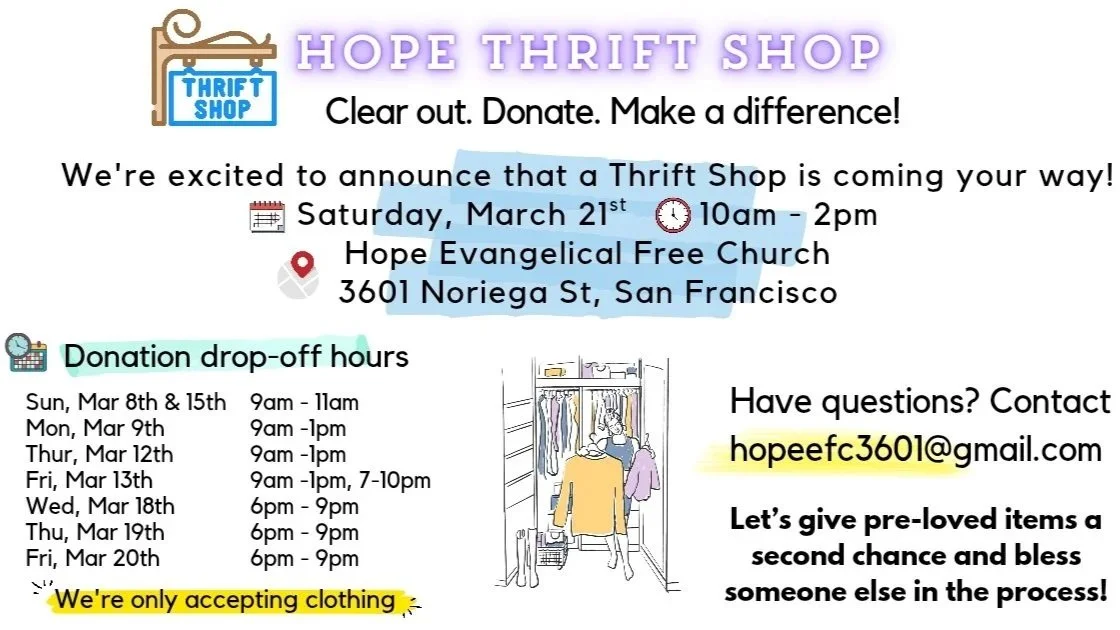 Sunday Morning, 9:30am-11:00am @ 3601 Noriega Street, S.F., CA 94122